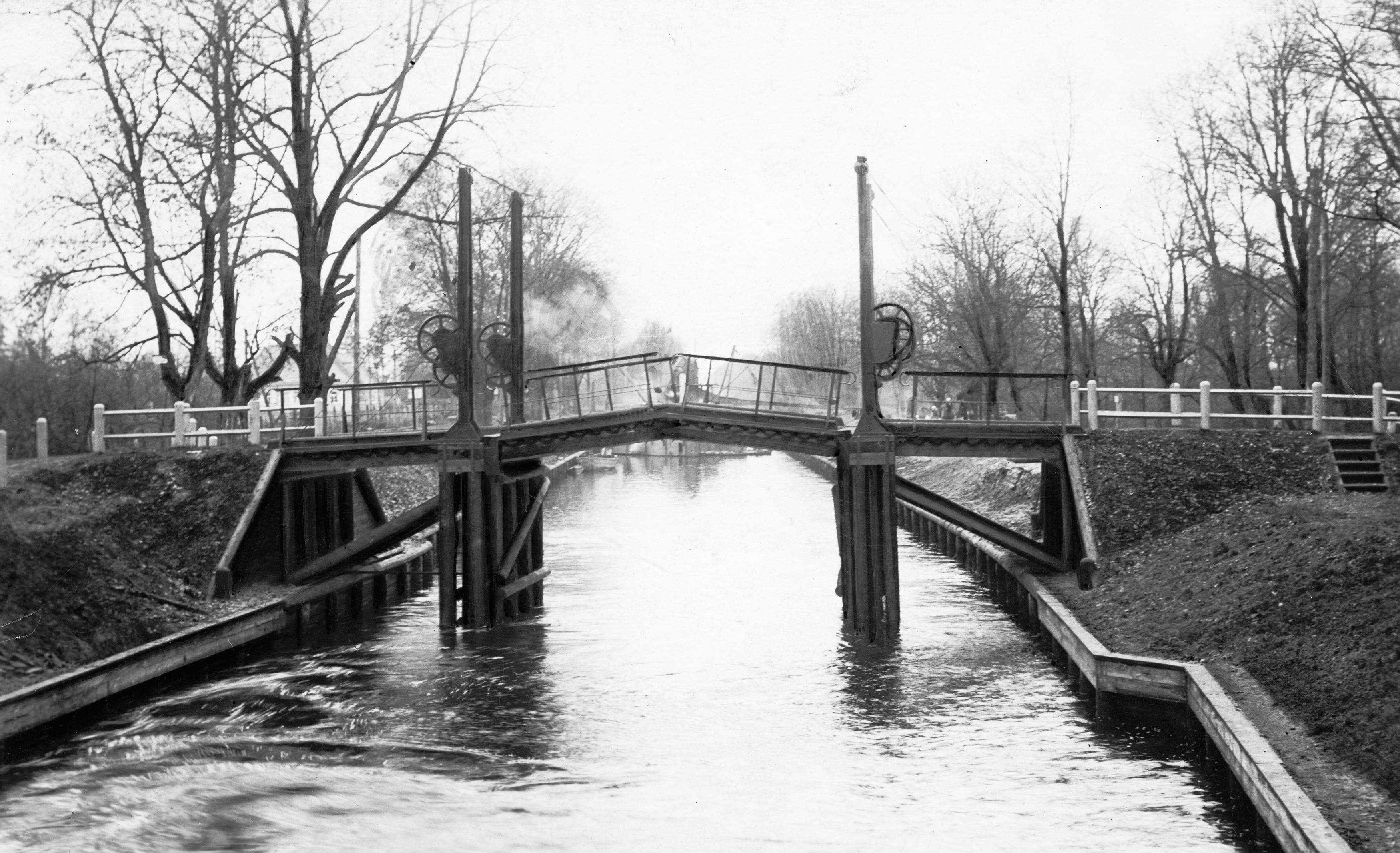 Канал Агінскага ля Целеханаў. Развадны мост, здымак 20-30-х гадоў ХХ ст. Фота NAC.