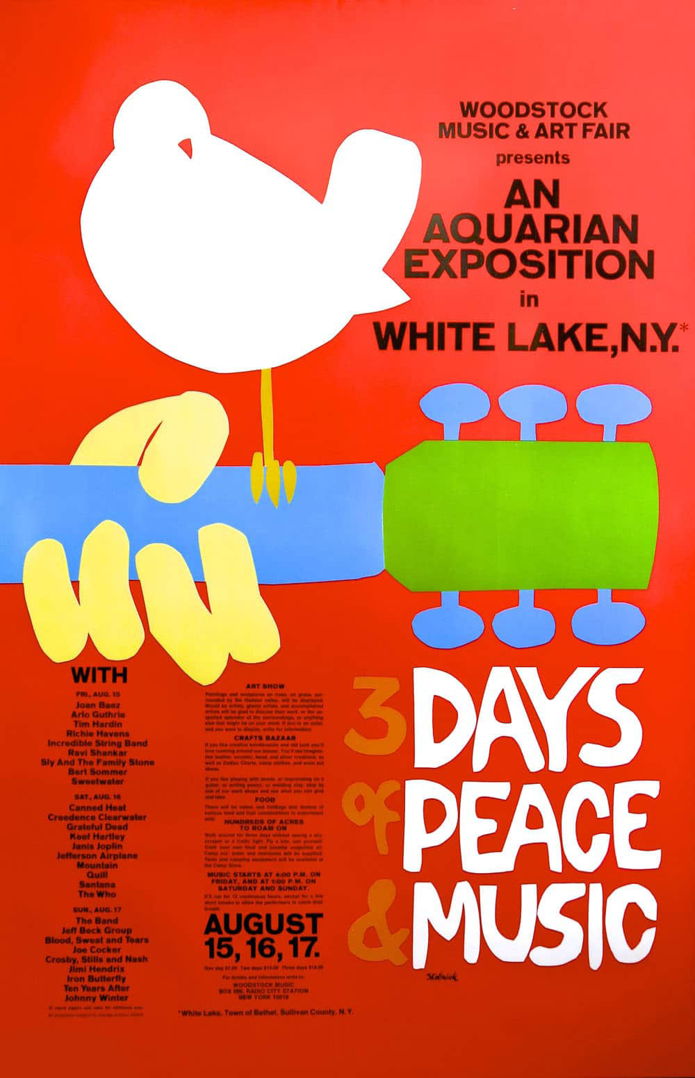 Афіцыйная афіша рок-фэсту Вудсток-1969. Аўтар Арнольд Скольнік. Адкрыты доступ