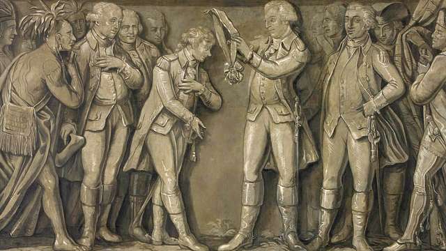 У 1784 годзе Джордж Вашынгтон уганараваў Тадэвуша Касцюшку знакавым Ордэнам Цынцыната. Касцюшка адзін з нямногіх замежнікаў-кавалераў гэтага ордэна, і, дакладна, адзіны з грамадзянаў Рэчы Паспалітай. Аўтар карціны Міхал Стаховіч. Са збораў Muzeum Narodowe ў Кракаве.