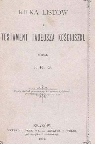 Зборнік асабістых дакумантаў і лістоў Тадэвуша Касцюшкі. Выдадзены ў Кракаве ў 1784 годзе. Публічная дамена.