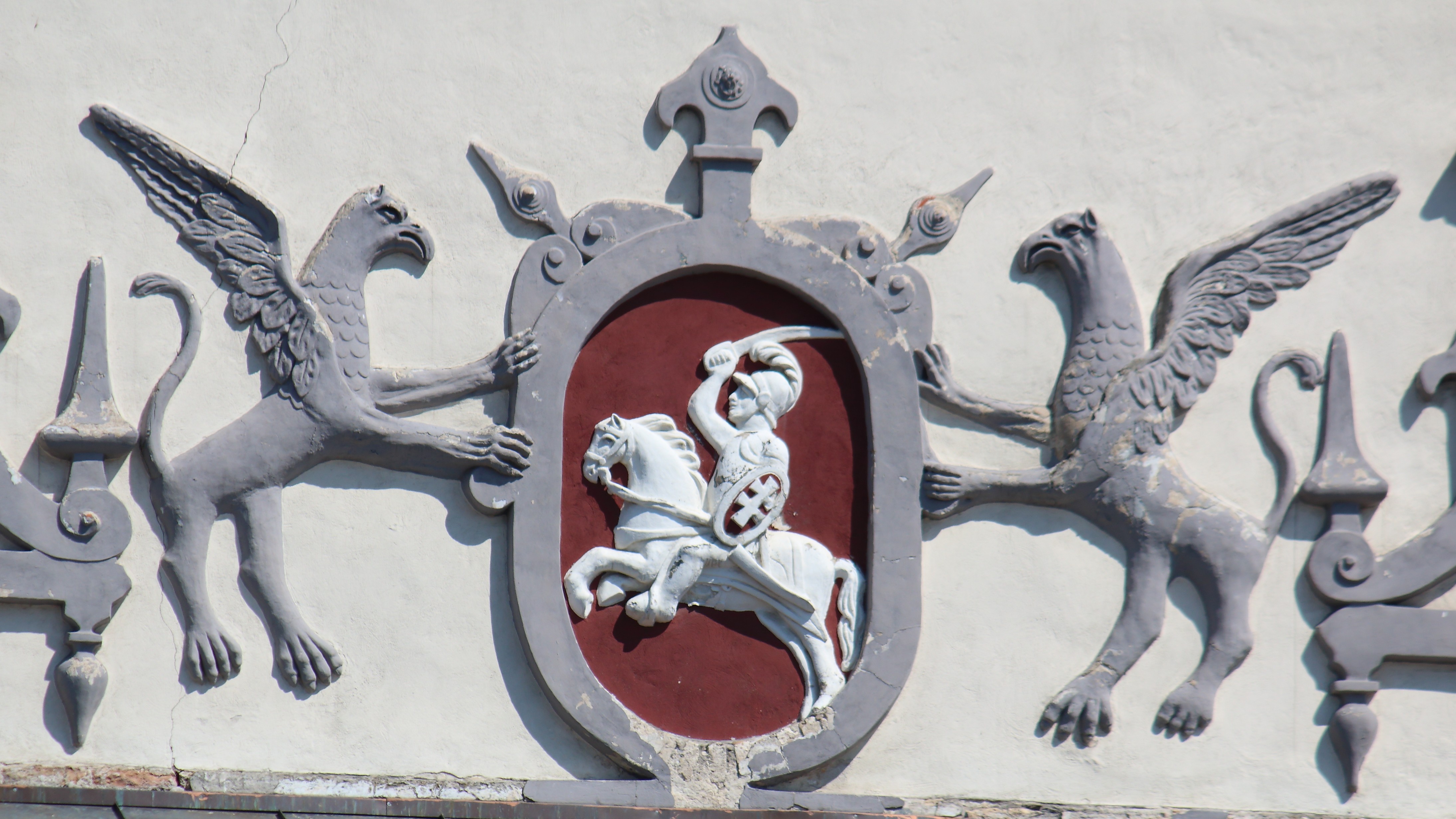 Два грифа держат "Пагоню" на Вострай Браме в Вильне, столице средневекового беларуска-литовского государства. Гриф, гибрид льва и орла, символизирует могущество, силу, отвагу, мудрость, независимость, выдержку в борьбе добра со злом. Фото Wikimedia Commons